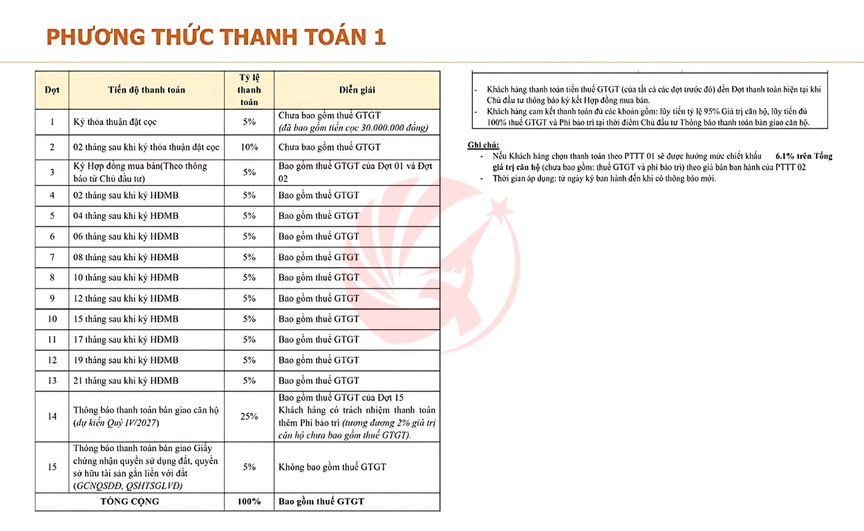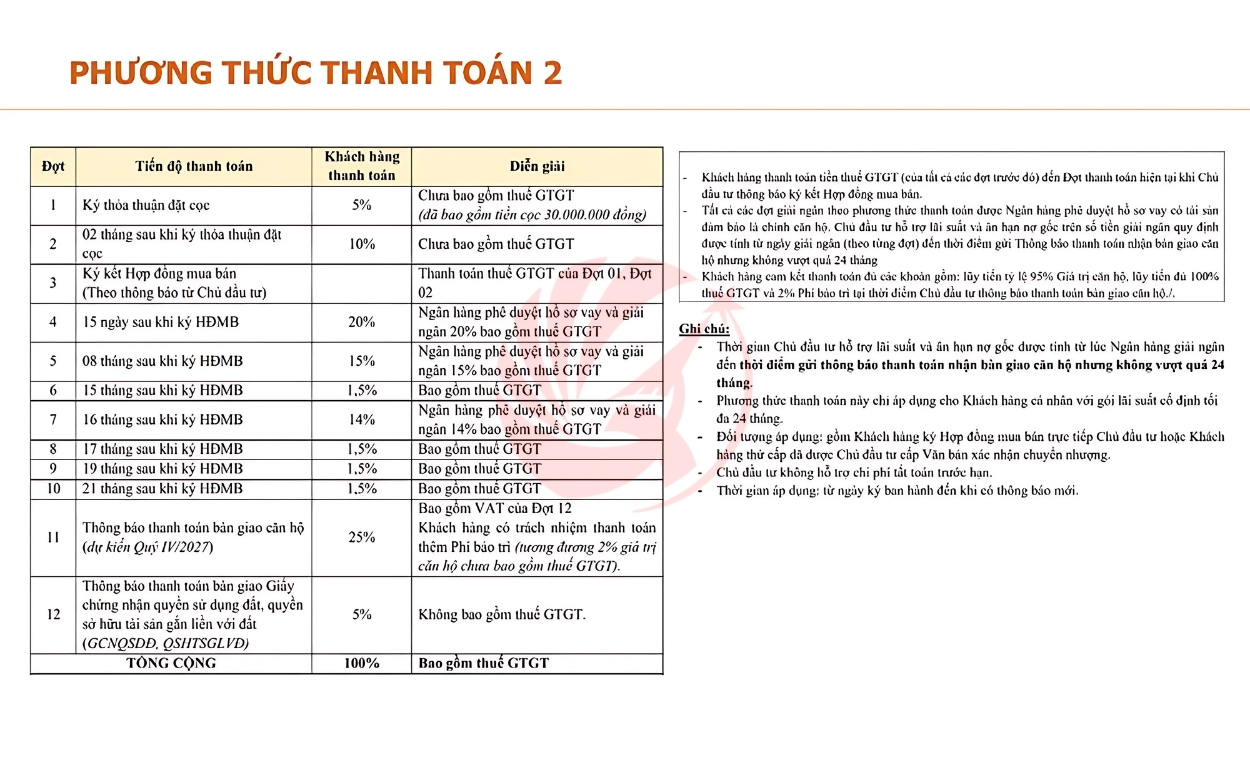 2. Phương thức thanh toán 02 – Thanh toán 15% nhận nhà