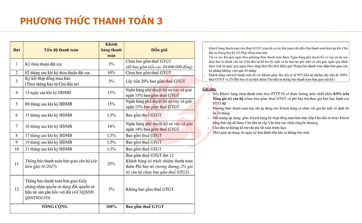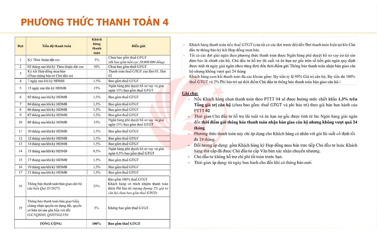 4. Phương thức thanh toán 04 – Thanh toán 15% vay ngân hàng xen kẽ