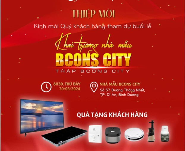 Thiệp mời khai trương nhà mẫu Bcons City – tháp Bcons City