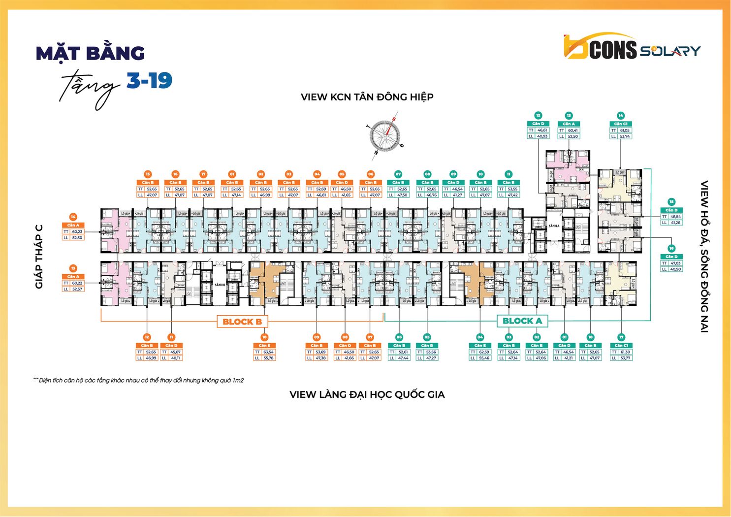 Bảng giá căn hộ Bcons Solary chỉ từ 33 – 35tr/m2 ( chỉ từ 1,7 tỷ/căn 2PN ), mức giá sẽ tùy thuộc vào tầng và hướng của căn hộ nên sẽ có giá khác nhau