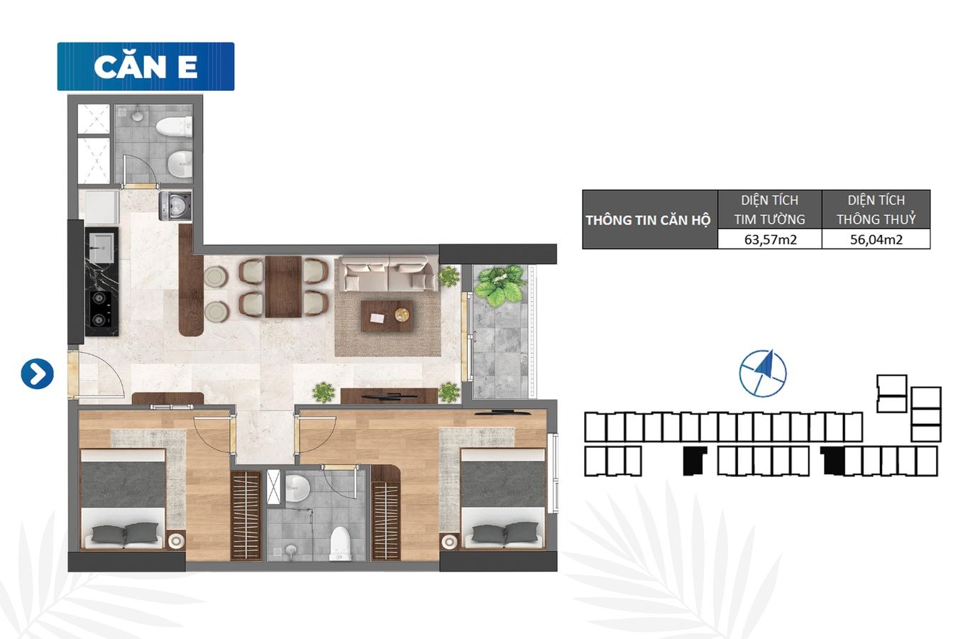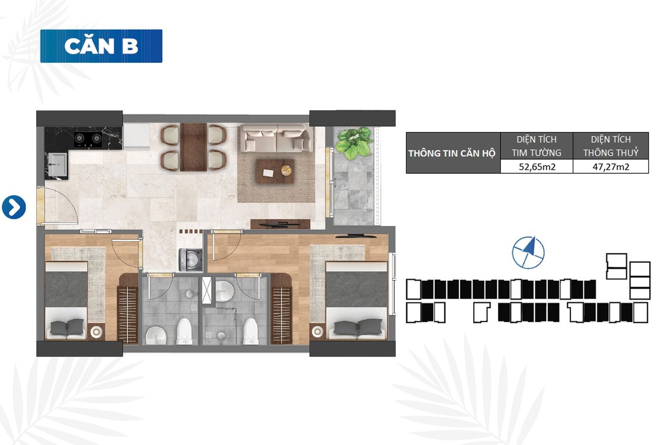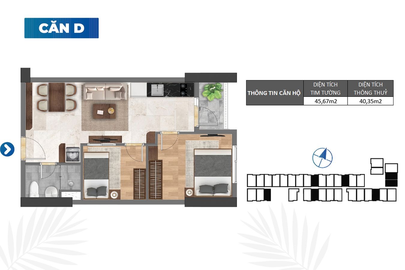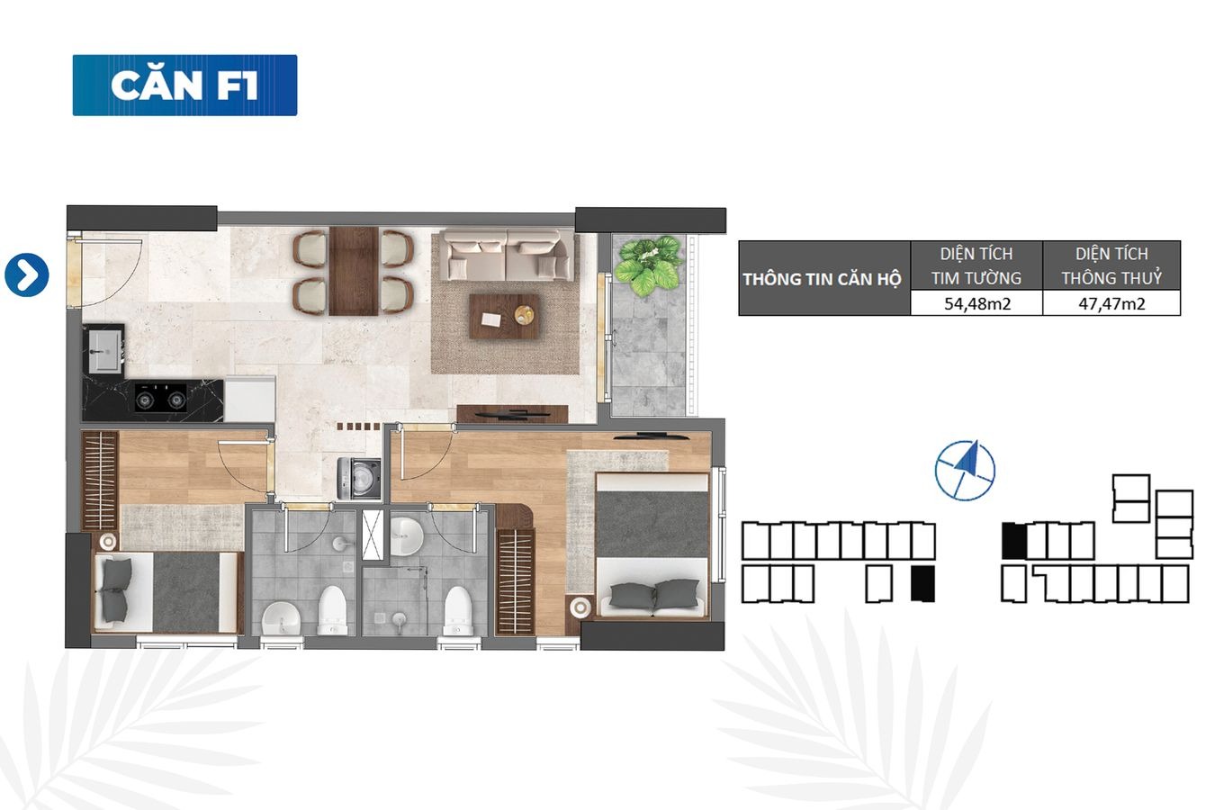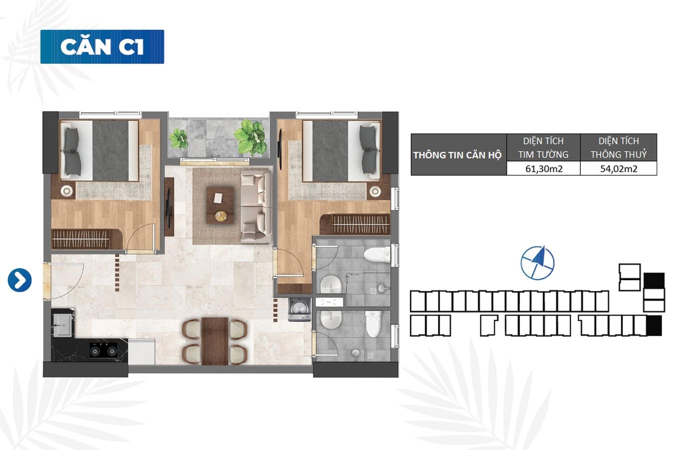 Hướng: Các căn có hướng ban công Bắc và Nam giá tốt